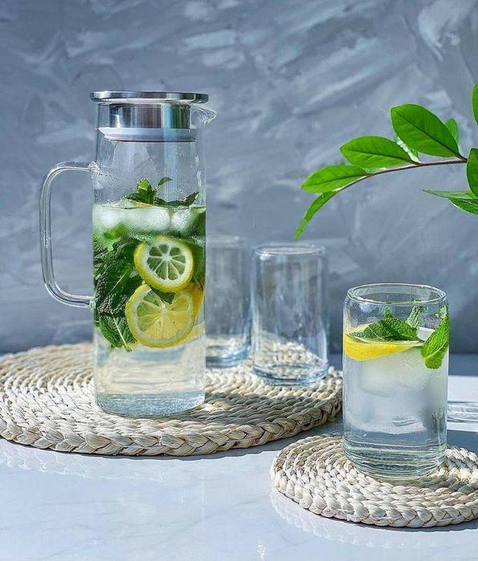 Кувшин Ardesto 1,2 л Материал: боросиликатное стекло, крышка:нержавеющая сталь, силикон. Объем: 1200 мл. Максимальный диаметр: 10 см. Высота: 22 см. Цвет: прозрачный. Термостойкость: -20…+150°C. Использование в СВЧ печах : не рекомендуется Использование в посудомоечной машине: не рекомендуется.