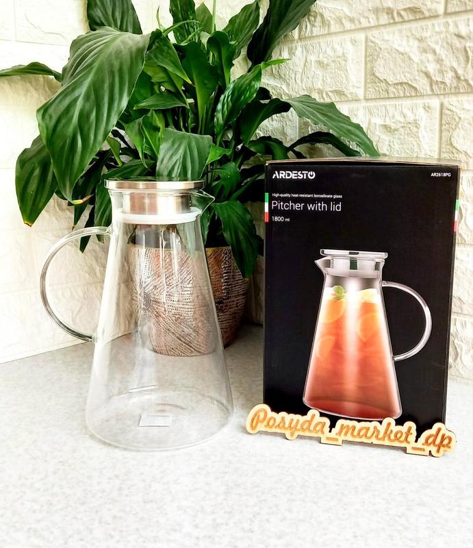 Кувшин Ardesto 1,8 л Материал: боросиликатное стекло, крышка:нержавеющая сталь, силикон. Объем: 1800 мл Цвет: прозрачный. Термостойкость: -20…+150°C. Использование в СВЧ печах : не рекомендуется Использование в посудомоечной машине: не рекомендуется.