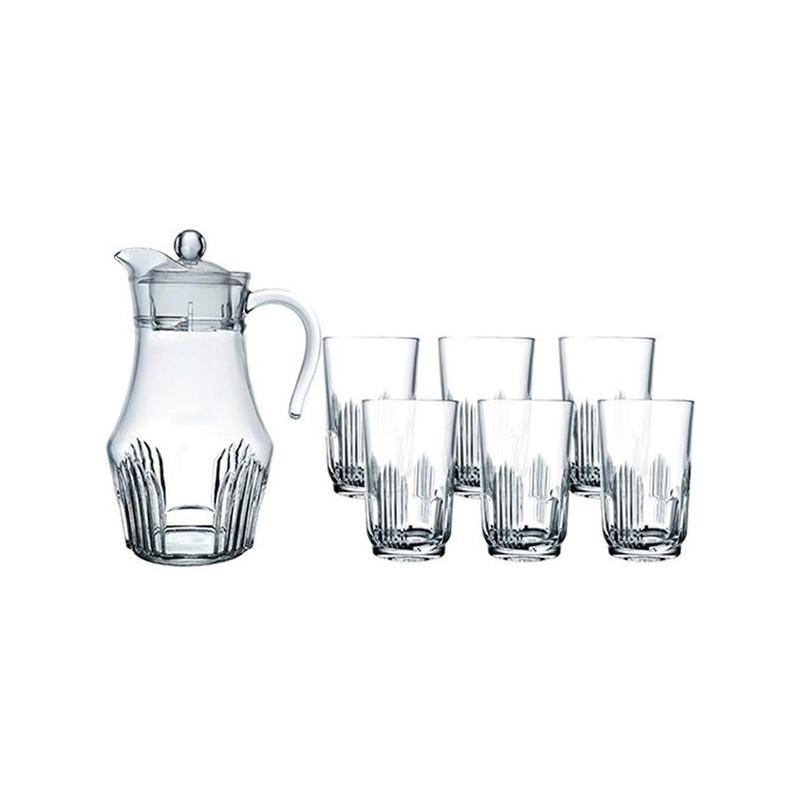 Набор для воды 7пр Arcopal Orient L4986 Характеристики: • В наборе 7 предметов • В набор входит: кувшин 1.6л - 1шт стакан высокий 270мл - 6шт • Цвет прозрачное стекло • Материал -- высококачественное ударопрочное стекло • Использование в посудомоечной машине -- Да • Производитель Arcopal • Серия Orient