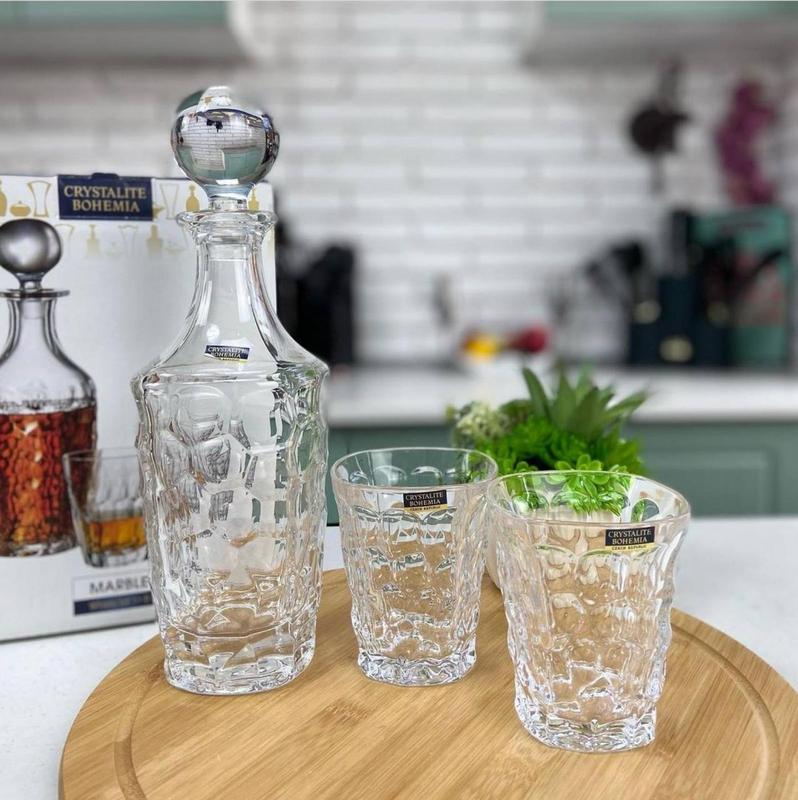 Набор виски 7 предметов Bohemia Marbie Характеристики: В набор входит: - стакан 290 мл - 6 шт. - графин 750 мл -1 шт. Материал: прозрачное богемское стекло Количество предметов: 7шт. Упаковка: подарочная. Использование в посудомоечной машине: да, пользуясь программой с низкой температурой Производитель: Bohemia, Чехия