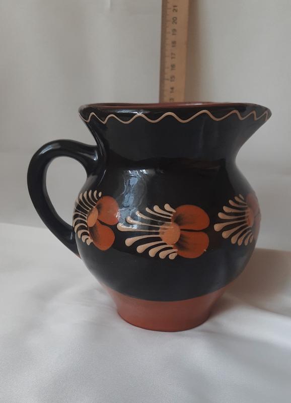 Кувшин керамический для напитков. Винтажный. Ручная роспись. Высота 14см; диаметр в самом широком месте 12см. Присутствующие следы пользования.