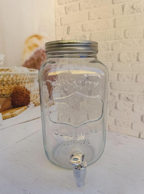 Лимонадник удобно использовать дома для воды, сока, лимонада, кваса или алкогольных напитков. Товар изготовлен из экологичных материалов, полностью подвергающихся переработке, и не влияющих на вкус и запах напитков. Характеристика: Вид: Лимонадник Материал: Стекло Материал крышки: Металл Материал краника: Пластик Объем: 3,5 л Цвет: Прозрачный Назначение: Для напитков Длина: 13,5 см, с краником - 19 см Ширина: 13,5 см Высота: 26,5 см Диаметр горловины: 10,5 см