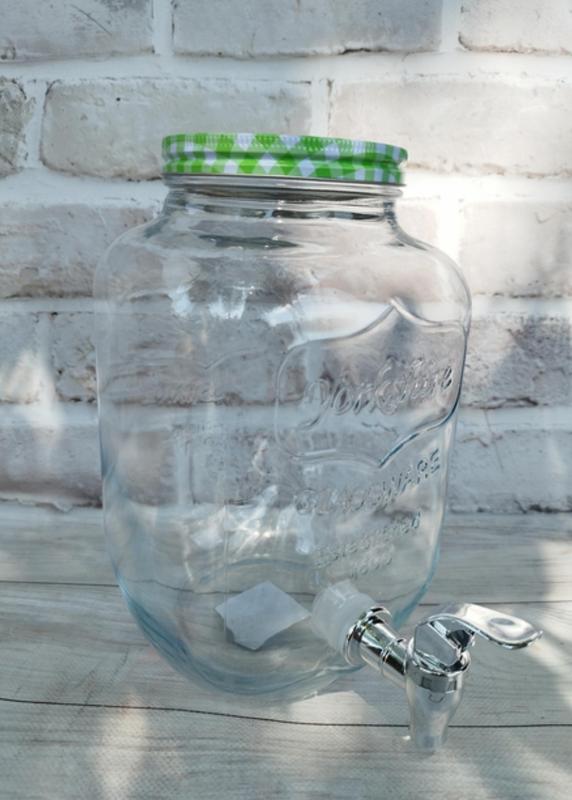 Емкость (банка) для лимонада, сока, вина, освежающих напитков с фруктами и цитрусовыми. Объем 4 л. Комплектуется лимонадник крышкой с защелками и краном для удобного использования. Таким графином смогут пользоваться даже дети, не подводя тяжелый графин с напитком. Материал графина – Стекло. Стеклянная емкость полностью безопасна и не подвержена воздействию кислот и щелочей, поэтому отлично подойдет для длительного хранения напитков. Кувшин для напитков с краником (лимонадник) станет достойным украшением любого праздника, его можно взять на природу и дачу, а также наслаждаться каждый день дома любимыми напитками.