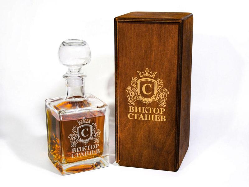 Графин для виски с именной гравировкой графін, дерев'яна скриня