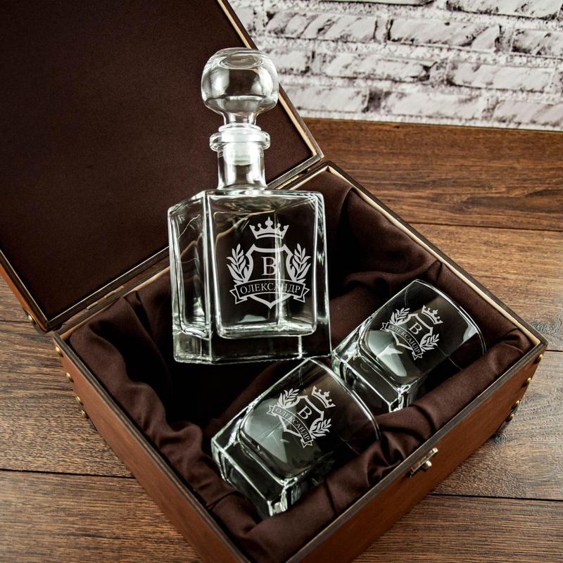 Стильный подарочный набор для виски графин + стаканы с гравировкой на коробке. графін + 4...