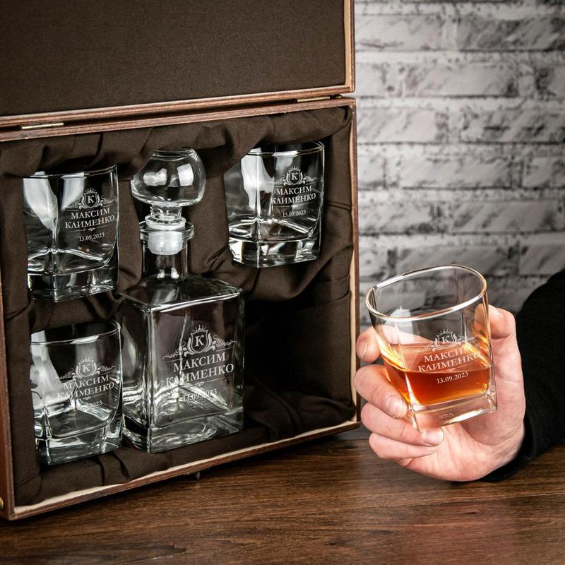 Подарочный набор для виски графин + стакан с гравировкой имени и фамилии графін + 2 склянк...
