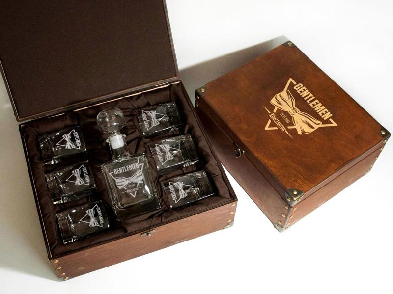 Комплект gentlemen графин + стакан любимому мужчине коробка с гравировкой графін + 2 склян...
