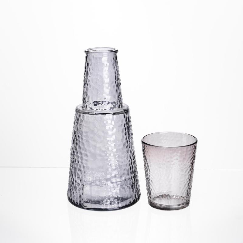 Стильный набор из кувшина и стакана станет не только практичным, но и декоративным элементом на вашей кухне или рабочем столе. Выполнен из прочного рифлёного стекла , который добавляет изысканности и уюта. Характеристики набора стакана с кувшином: Высота кувшина: 23 см; Диаметр кувшина: верх - 4 см, низ - 10 см; Высота стаканов: 9.5 см; Объем кувшина: 800 мл; Объем стакана: 250 мл; Материал: стекло; Количество предметов: 2 (2 стакана + 1 кувшин). Особенности кувшина со стаканом для воды: Компактный дизайн: стакан удобно надевается на кувшин сверху, экономя место при хранении. Универсальное применение: идеально подходит для воды, сока или лимонада. Современный стиль: гармонично впишется в любой интерьер. Такой набор станет не только практичным решением для повседневного использования, но и стильным элементом сервировки. Кувшин со стаканом гармонично дополнят интерьер кухни, офиса или гостиной и подчеркнут вашу заботу о комфорте и эстетике в доме.