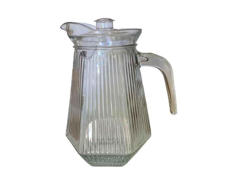 Кувшин 1,3л стеклянный, прозрачный, ребристый, с крышкой, без коробки.