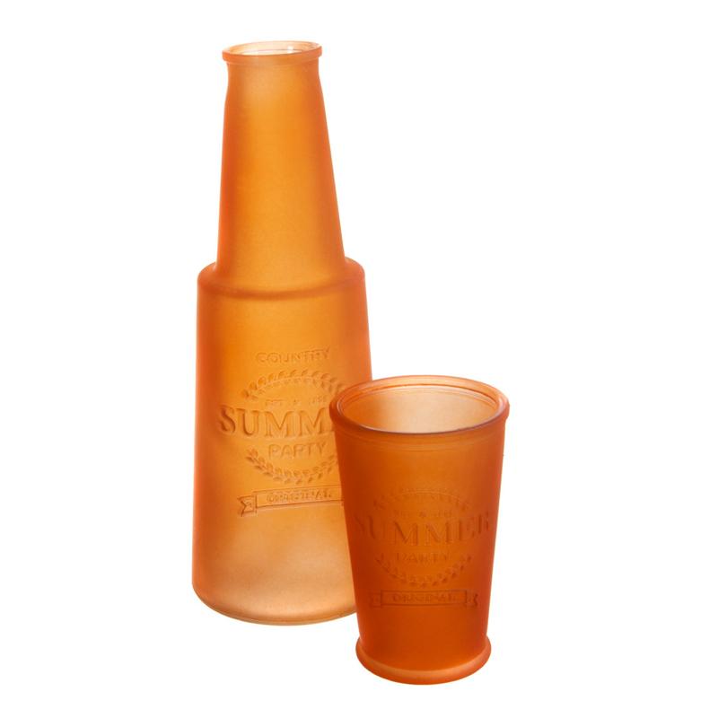 Яркий комплект,графин со стаканом.Цвет- апельсиновый.Размеры: графин диаметр 9см,высота 28см; стакан диаметр 7см, высота 12см.Материал - стекло. Страна производитель: Польша. Отправка в день заказа!