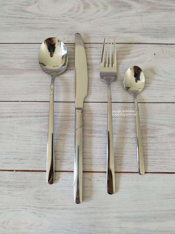 Набор столовых приборов из 24 предметов. Приборы изготовлены из нержавеющей стали. Элегантный дизайн приборов привлечет внимание и станет дополнением при сервировке как праздничного, так и повседневного стола. Они не подвержены образованию коррозии и легко моются. ✔️Материал: нержавеющая сталь ✔️Материал ручки: нержавеющая сталь ✔️Количество предметов: 24 ✔️Количество персон: 6 ✔️Можно мыть в посудомоечной машине ✔️Упаковка: картонна коробка ✔️Цвет: серебристый Комплектация: ✔️Ложка чайна: 6 шт ✔️Нож столовый: 6 шт ✔️Ложка столовая: 6 шт ✔️Вилка столова: 6 шт