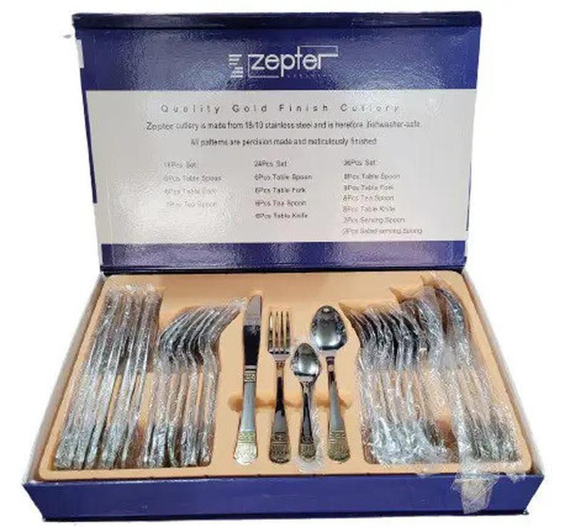 Склад набору: Ложка чайна – 8 шт. Ложка їдальня – 8 шт. Вилка столова – 8 шт. Ніж столовий – 8 шт. Ложка салатна – 2 шт. Ложка сервірувальна – 2 шт.