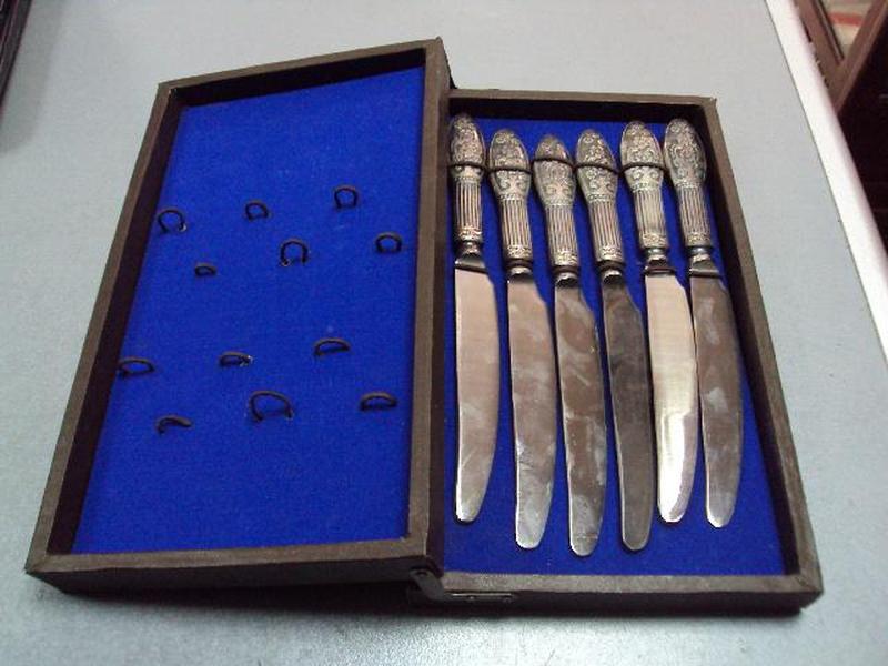 Набір в коробці ножі столові візерунок квіти квіточки нержавіюча ссср 27х15,5 см лот 6 шт №11351