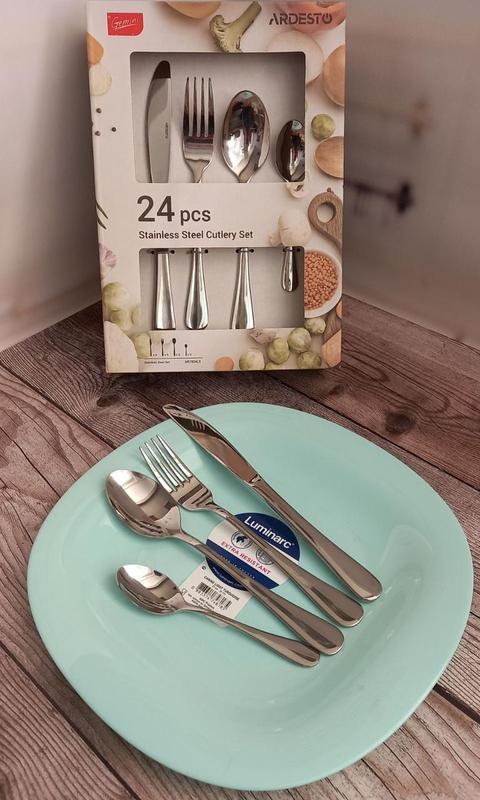 Набор столовых приборов 24 предмета Ardesto Gemini Luster AR1924LS Характеристика: Серия: Luster Тип: набор столовых приборов Количество предметов: 24 шт. ложка столовая - 6 шт. (вес: 51 г, толщина: 3 мм, размер: 194 мм) вилка столовая - 6 шт.(вес: 41 г, толщина: 3 мм, размер: 199 мм) нож столовый - 6 шт.(вес: 90 г, размер: 230 мм) ложка чайная - 6 шт.(вес: 22 г, толщина: 2,5 мм, размер: 135 мм) Материал: нержавеющая сталь Полировка: зеркальная Упаковка: коробка Использование в посудомоечной машине: да Страна производства: Китай