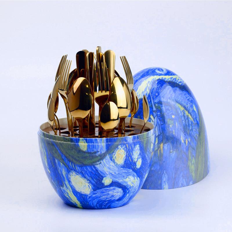 Набір столових приладів на 6 персон із нержавіючої сталі 24 штуки з підставкою "яйце"