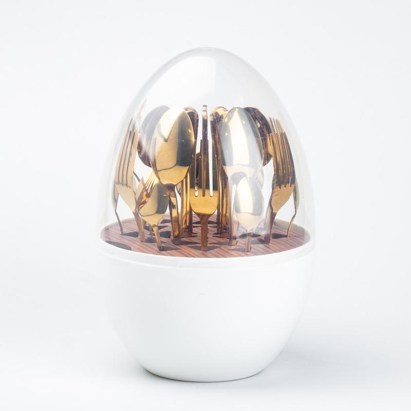 Набор столовых приборов золотых на 6 персон из нержавеющей стали 24 штуки с подставкой бел...