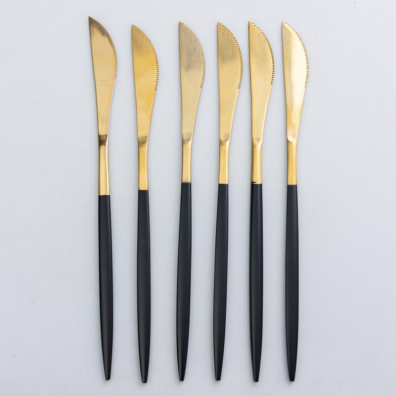 Набор столовых ножей 6 штук ножи сервировочные столовые 22.5 см черный с золотом