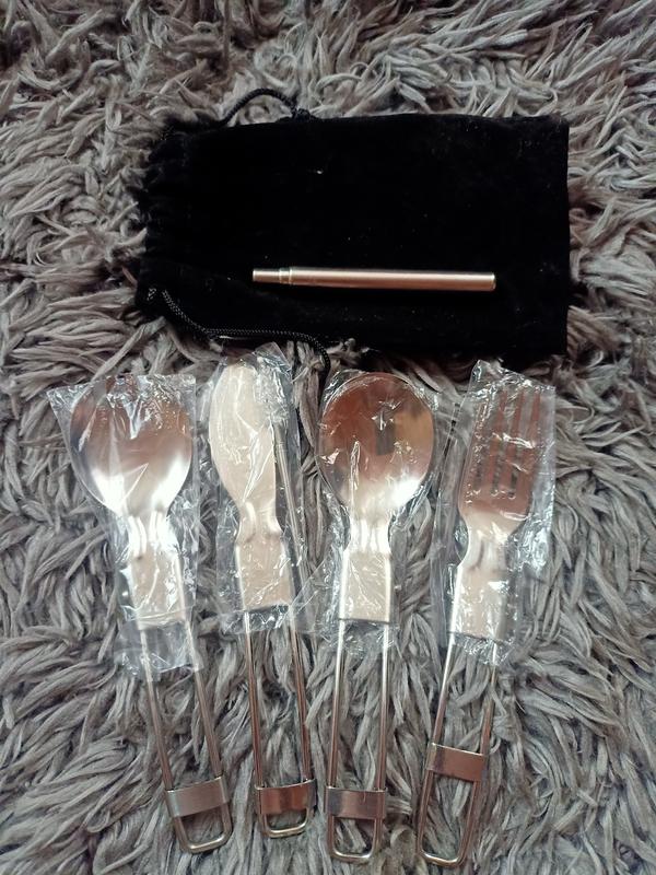 Туристический набор сложных столовых приборов в чехле - незаменимый инструмент для любого туриста, который хочет иметь при себе все необходимые инструменты для кукурузы, не занимая при этом много места в своем рюкзаке или сумке. Набор состоит из трех столовых приборов: вилка, нож и ложка, каждый из которых состоит на две части для удобства хранения. Все приборы изготовлены из высококачественной стали, что обеспечивает их прочность и долговечность. Кроме того, набор поставляется в компактном чехле, который обеспечивает их безопасное хранение и защиту от повреждений. Чехол также имеет петлю для подвешивания на карабин или ремень, что позволяет легко хранить его вместе с другими туристическими вещами. Общий вес набора составляет всего 80 грамм, что делает его идеальным вариантом для тех, кто ищет легкий и компактный туристический набор столовых приборов.