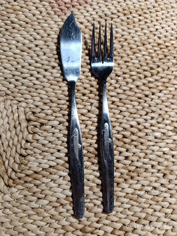 Винтажный набор приборов для рыбы, нож и вилка рыбные rostfrei