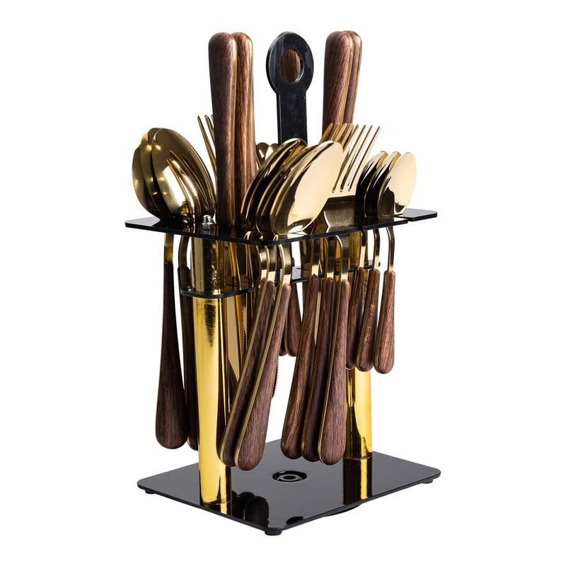 Набор столовых приборов на 6 персон с деревянными ручками на подставке столовые приборы 24...