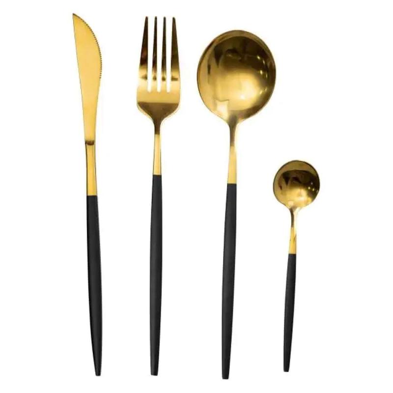 Набор столовых приборов 24 предмета столовый набор на 6 персон золотистый с черным hp-20-4...