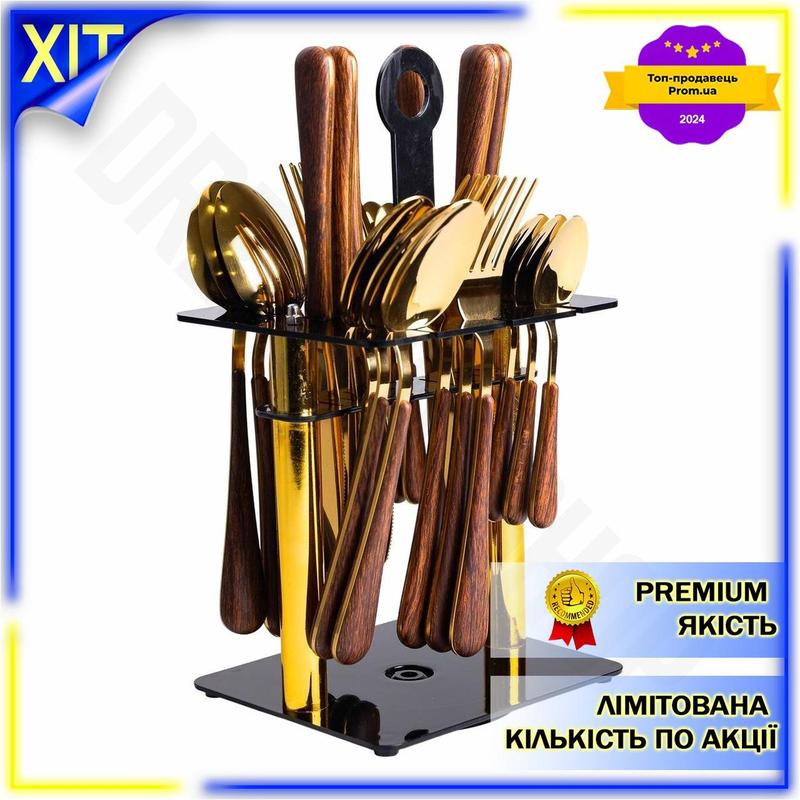 Dm набор столовых приборов спецификация 2.2 24 шт с деревянными ручками на подставке для 6...