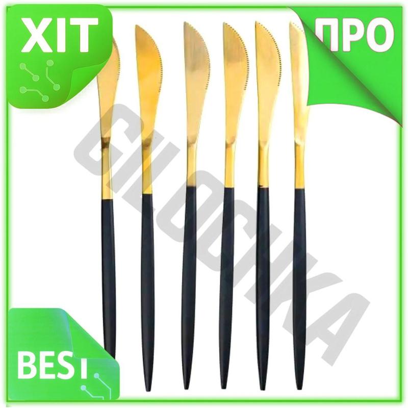 Ve набор столовых ножей 6 new version штук черные с золотом для сервировки кухонные ножи и...