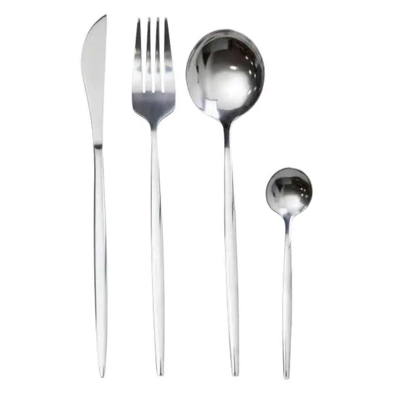Набор столовых приборов состоит из 24 предметов, рассчитанных на обслуживание 6 персон. В комплект входят 6 столовых ложек, 6 чайных ложек, 6 вилок и 6 столовых ножей. Все элементы выполнены в серебристом цвете, что придает им классический и универсальный вид. Основные характеристики: Количество предметов в наборе: 24 шт.; Количество персон: 6; Материал: нержавеющая сталь; Упаковка: коробка; Размеры приборов: длина столового ножа: 22.5 см; длина столовой ложки: 20.8 см; длина столовой вилки: 21.5 см; длина чайной ложки: 12.8 см. Комплектация набора: столовый нож: 6 шт.; столовая ложка: 6 шт.; столовая вилка: 6 шт.; чайная ложка: 6 шт.. Материал изготовления обеспечивает устойчивость к механическим повреждениям и коррозии, что способствует длительному использованию. Поверхность приборов гладкая, без лишних декоративных элементов, что облегчает уход и очистку. Эргономичная форма ручек способствует удобному расположению в руке во время использования. Комплект может использоваться как для повседневного применения, так и для сервировки праздничного стола. Универсальность дизайна позволяет сочетать его с различными стилями посуды и текстиля. При правильном уходе столовые приборы сохраняют свой первоначальный вид на протяжении длительного времени.