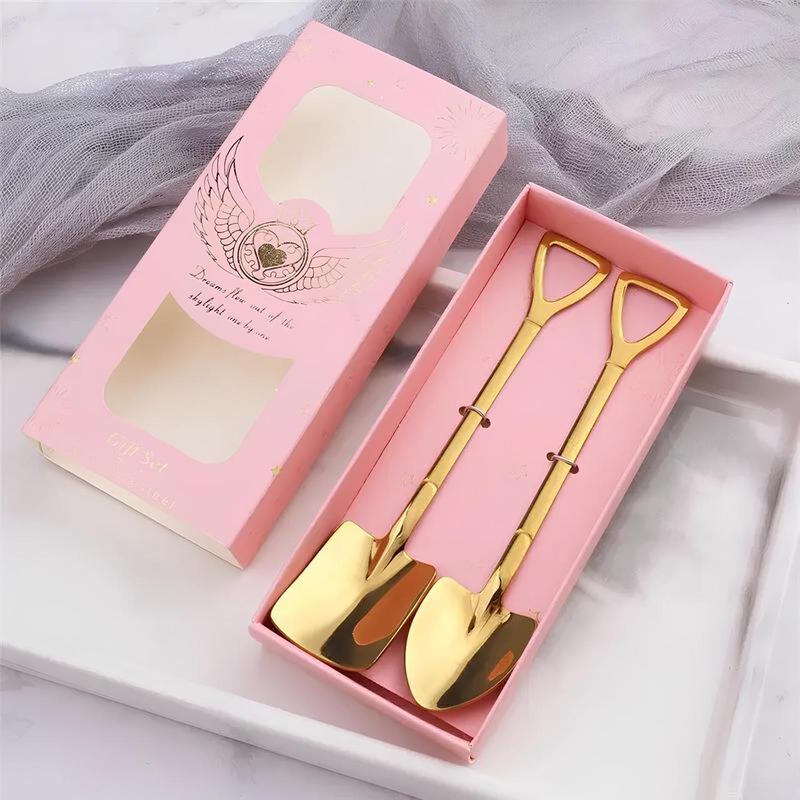 Набор чайных ложек resteq в виде лопаты золотого цвета, 2 шт, нержавеющая сталь 304