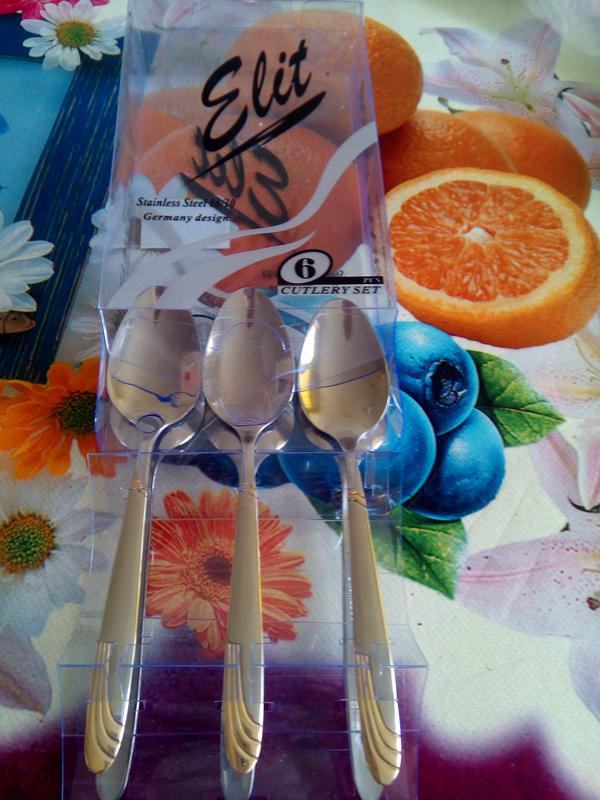 новий,нержавіййка з вставками золото,є ще ложки столові,вилки