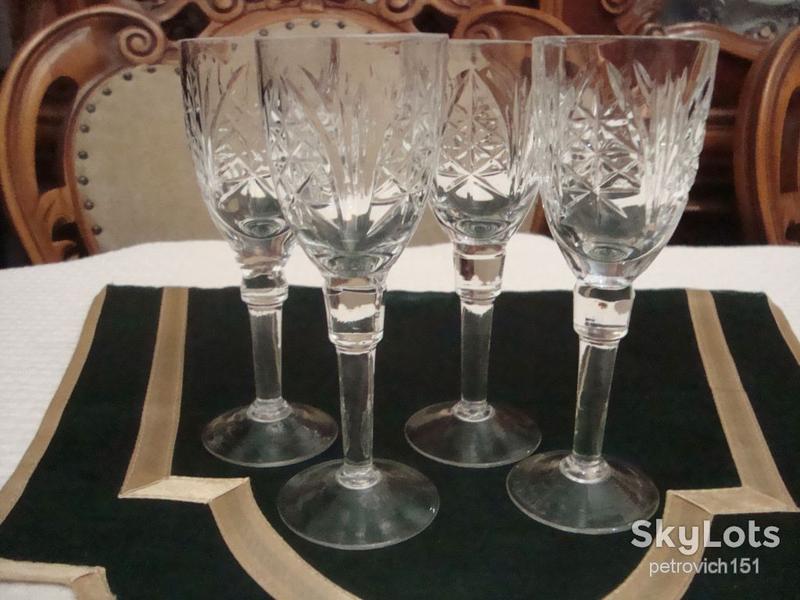 Красивые Рюмки Набор 4 шт Хрусталь СССР БЕЗ СКОЛОВ И ТРЕЩИН ВЫСОТА 14 СМ., ДИАМЕТР ВЕРХА РЮМКИ 5 СМ.