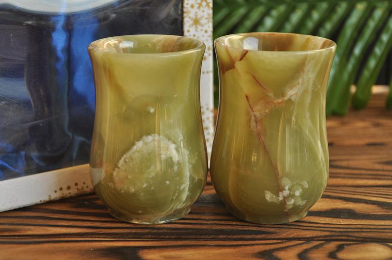 Размер рюмок: Высота 9.5 см, диаметр 6.5 см. Объем - 120 ml (Вы получаете тот цвет изделия, что представлен на фото) просим обратить внимание! коробка не несет эстетический характер, она для транспортировки! Материал: Натуральный камень оникс Страна производитель: Пакистан