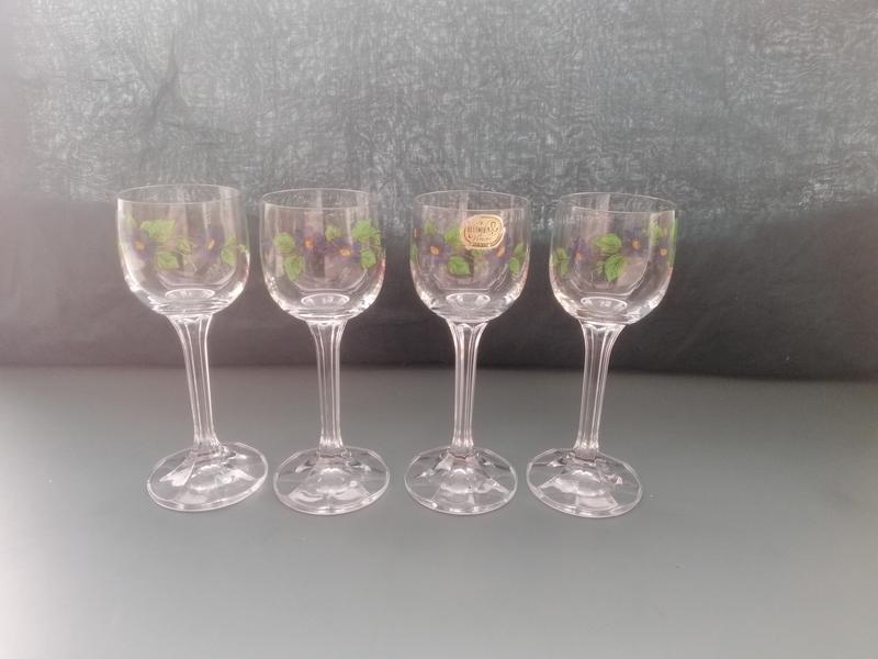 Рюмки flora ( чехоловакия). богемское стекло. 4 шт винтаж! Для декора!