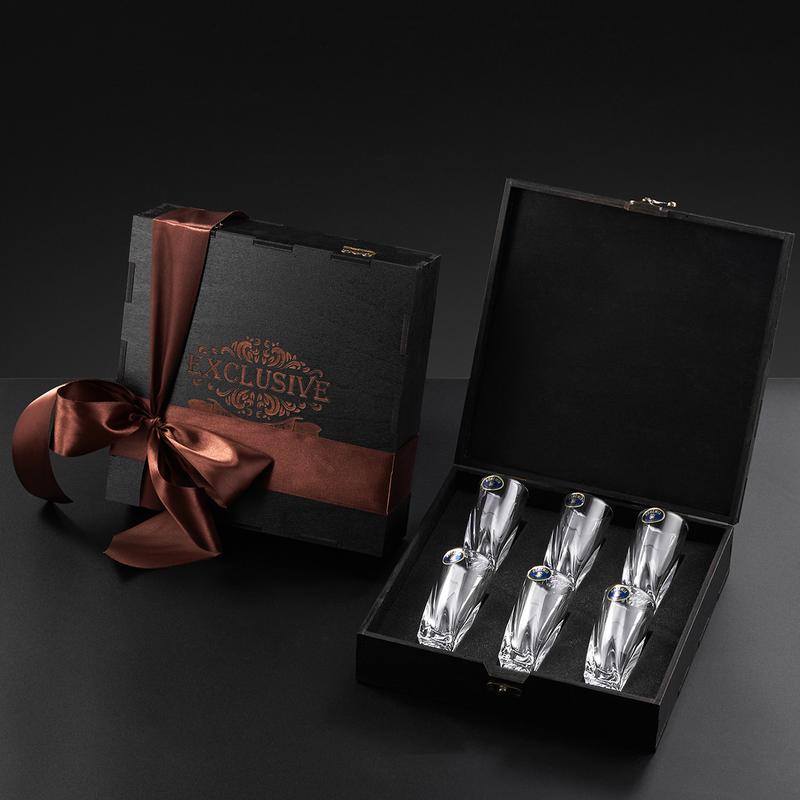 ✨ Непревзойденный подарок для родных, друзей и коллег! ✨ 🔹 Элегантный подарочный набор, который покорит своей утонченностью и стилем. 🔹 У вас также есть возможность сделать индивидуальную гравировку, чтобы подчеркнуть уникальность набора и выразить самые искренние пожелания. 📦 Комплектация: ✅ Черная деревянная коробка (23 см × 23 см × 6,5 см) со стандартной гравировкой EXCLUSIVE на внешней стороне, перевязанная лентой 🎀 ✅ 6 высоких стопок Bohemia Quadro (50 мл) ✅ Индивидуальный ложемент, созданный специально под стопки 🎁 Стильный, роскошный и запоминающийся подарок для любого случая!