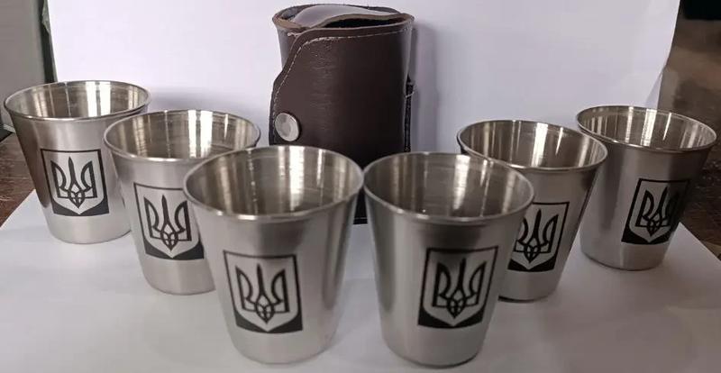 Набор рюмок из 6 штук трызуб, походного плана + кожаный чехол
