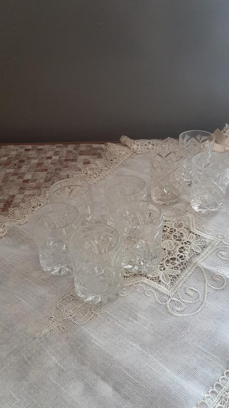 В наявності є 5 чарок однакових із товстого скла і 3 чарки з другим визирунком по 50 ммл
