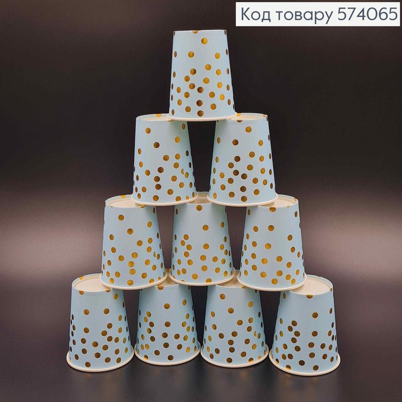 Набор бумажные стаканчики, бумажные стаканчики праздничного голубого цвета в золотой горош...