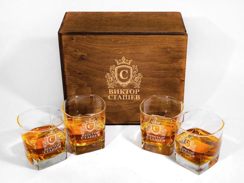 Подарочный набор из 4-х стаканов для виски с гравировкой
