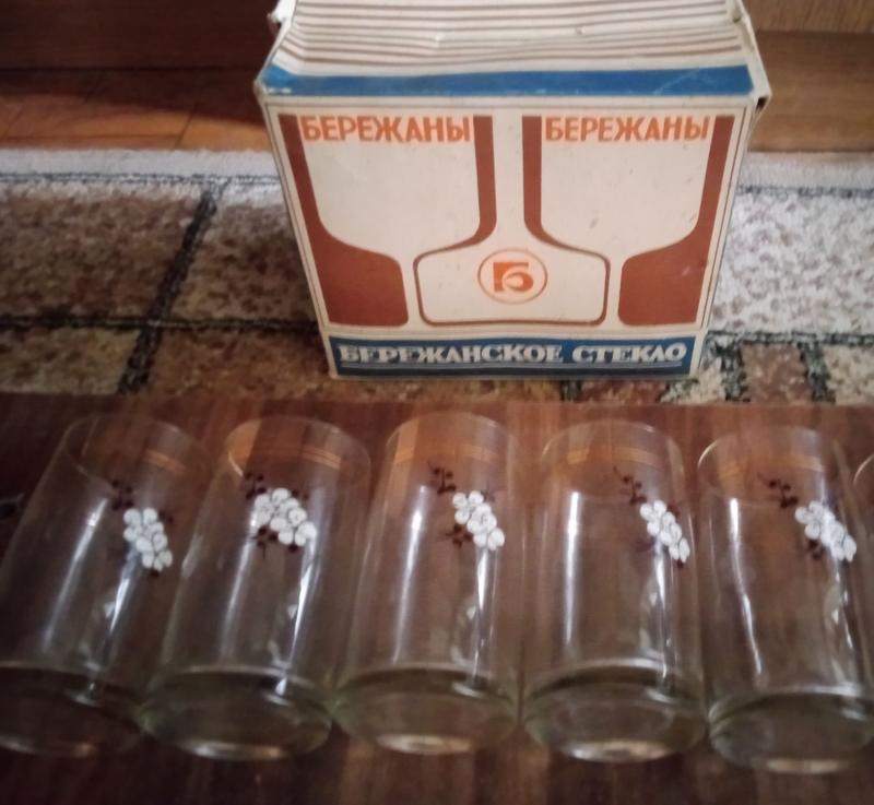 Предлагаю стаканы 5 шт из качественного тонкого стекла с двумя позолоченными линиями сверху и с нежным растительным рисунком. Объем 300 мл. Использовались мало. Без дефектов. Производитель Бережанський завод