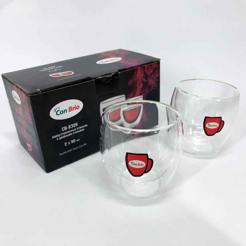 Набор стаканов с двойным дном con brio cb-8309-2 90 мл 2 шт, стеклянные чашки с двойным дн...