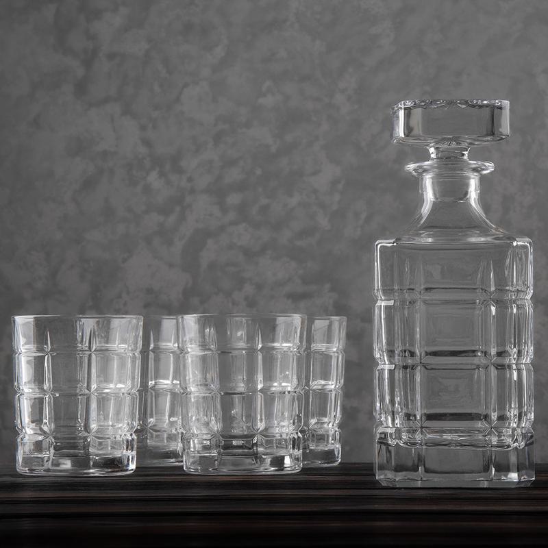 Набор стаканов 300 мл 4 шт с графином 750 мл 19196-007 Набор состоит из графина с крышкой и 4 стакана. Графин – 750 мл. Высота 22,5см, ширина 9см, длина 9см. Стакан 300мл. Набор стаканов с графином – отличный подарок для любителей виски, коньяка, рома и других алкогольных напитков. Этот стильный и элегантный комплект можно подарить мужчинам и женщинам, которые ценят качество и наслаждение от утонченного вкуса алкоголя. Этот стеклянный набор можно использовать во время особых моментов, праздников и торжеств, а также в повседневной жизни для наслаждения ароматным и вкусным алкоголем.Набор станет прекрасным дополнением любого интерьера и придаст атмосфере вечера непревзойденную роскошь и элегантность.