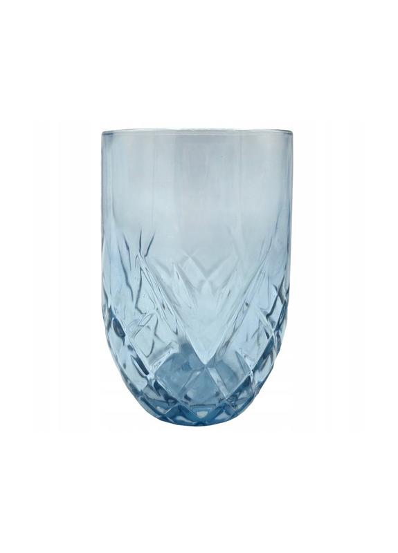 Оригинальный элегантный стакан из прозрачного стекла с синим оттенком. Подходит для холодных напитков. Емкость 250 мл. Украшен канавками, расположенными в орнаментальном рисунке. Диаметр 7 см, высота 10.5 см. Производитель Китай.