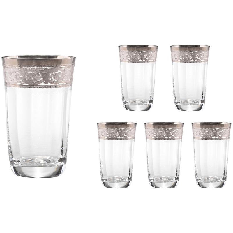 Набір склянок для напоїв з серії Версаль ТМ LORA з 6 предметів – це втілення витонченості і справжнього італійського стилю. Він виконаний вручну з тонкого кристально чистого італійського скла і декоровані класичними розписами посрібленою латунню. Склянки Версаль зможуть створити відповідний для святкування настрій, а разом з іншими предметами серії стануть прикрасою всього торжества. Мити склянки потрібно вручну з мийним засобом, крім абразивних порошків і паст, які можуть залишити на поверхні подряпини.