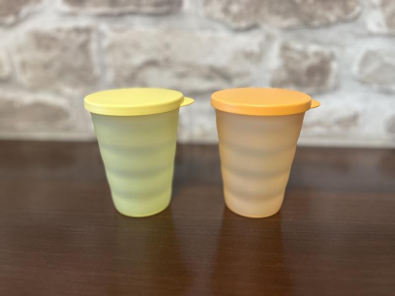Набір склянок «Чарівність» 330мл, 2шт Tupperware Склянки мають герметичні кришки непроливайки та оксамитову поверхню, що мінімізує появу дрібних подряпин. Чудово підійдуть для пікніку, або для дітей, бо ніколи не розібʼються. Виготовлені із еко-полімеру, що абсолютно безпечний для людей.
