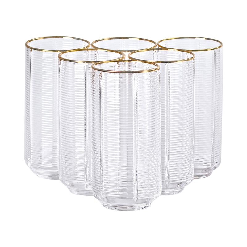 Набор стаканов состоит из шести высоких ребристых стаканов, которые сочетают в себе практичность и стиль. Их дизайн из прозрачного стекла подчеркивается ребристой поверхностью, создавая эффектную текстуру и придавая им изящества. Каждый напиток в этих стаканах выглядит еще более привлекательно, а игра света на ребристой поверхности придает им особое очарование. Стаканы имеют объем 400 мл, что делает их идеальными для подачи воды, соков или коктейлей. С высотой 14 см они удобны как для повседневного использования, так и для особых событий. Золотой ободок добавляет нотку роскоши и завершенности дизайну, делая эти стаканы не только функциональными, но и декоративными элементами сервировки. Характеристики: Количество: 6 штук Объем: 400 мл Высота: 14 см Материал: стекло Преимущества: Высокие ребристые стаканы с золотым ободком добавляют изящества и роскоши. Объем 400 мл идеально подходит для подачи воды, соков и коктейлей. Ребристая поверхность создает визуальный интерес и улучшает игру света на стаканах. Высота 14 см обеспечивает комфортное держание и легкость в использовании. Идеальны как для повседневного использования, так и для праздничных мероприятий, добавляя атмосферу элегантности. Уход: Рекомендуется мыть вручную с мягкими моющими средствами, чтобы сохранить блеск и целостность золотого ободка. Избегайте использования абразивных губок и посудомоечных машин, чтобы предотвратить повреждение декора. Храните в вертикальном положении, чтобы избежать царапин и сколов на поверхности.