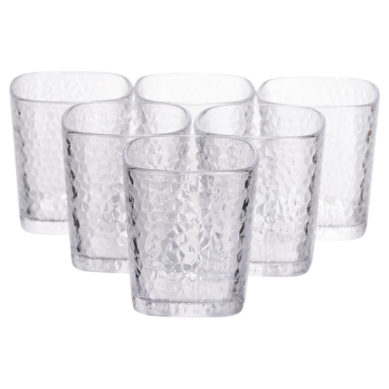 Набір квадратних склянок зі потовщеного скла поєднує в собі сучасний дизайн, практичність і довговічність. Їх рельєфна поверхня надає оригінальний зовнішній вигляд і запобігає ковзанню, забезпечуючи зручне утримання в руці. Прозоре скло підкреслює колір напоїв, роблячи подавання води, соку або коктейлів особливо привабливим. Основні характеристики набору склянок: Матеріал: скло; Об'єм: 250 мл; Розмір: 7×7×8 см; Верхній діаметр: 7 см; Нижній діаметр: 6 см. Набір із 6 склянок стане практичним рішенням для дому, офісу або кафе. Він гармонійно впишеться в будь-який інтер'єр і підійде як для повсякденного використання, так і для сервірування святкового столу.