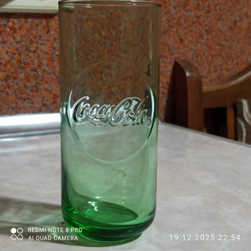 Стакан кола зеленого оттенка, 300 млг, высота 15 см.
