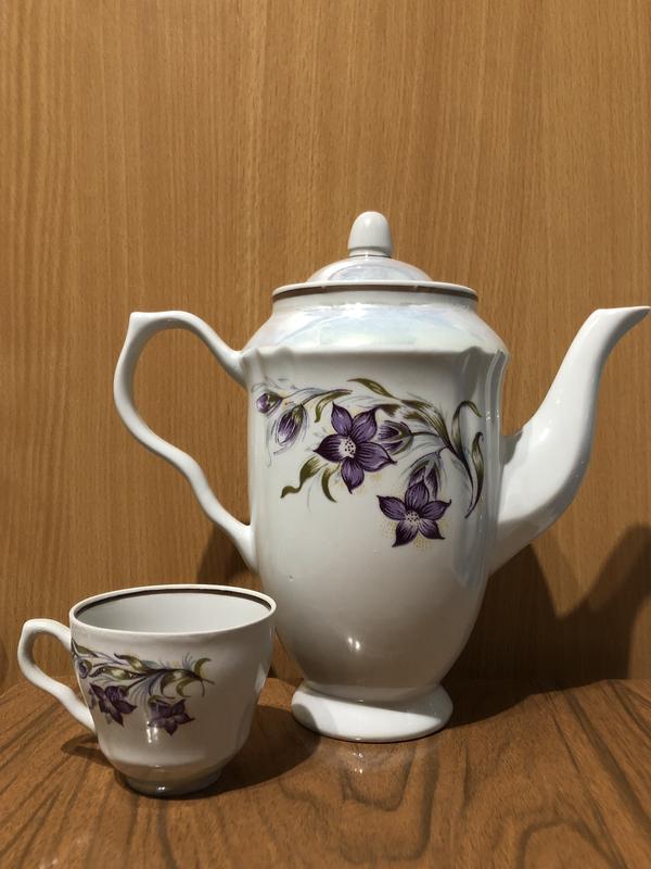 Из ссср: кофейник и чашечка (барановка),уже винтаж конца 80-х;фарфор, милый рисунок. можно...