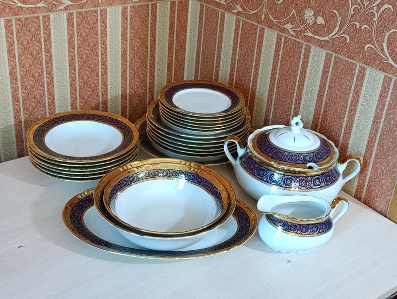 Сервиз Thun 1794 "Констанс" на 6 персон 24 предмета столовый фарфор. Состояние идеальное, царапин и сколов не. Был в использовании 2 раза Также продаю чайный сервиз Thun 1794 "Констанс" Покупали в фирменном магазине г.Днепр Столовый Сервиз Thun 1794 "Констанс" включает в себя все необходимые предметы для сервировки стола на шесть человек. Суповые тарелки (6 шт.) диаметр 22.5 см Обеденные тарелки (6 шт.) диаметр 23.5 см Закусочные тарелки (6 шт.) диаметр 19 см Круглое блюдо диаметр 29.5 см Овальное блюдо 35 на 23 см Салатница (или салатники) диаметр 22 и 25 см Супница Соусник Особенности сервиза Thun 1794 "Констанс": Производитель: Thun 1794 - старейший и крупнейший чешский производитель фарфора, основанный в 1794 году. Материал: Фарфор. Назначение: Столовый сервиз предназначен для ежедневного использования и сервировки праздничного стола. Количество предметов: 24. что является достаточным для семейного обеда и небольших приемов. Дизайн: "Констанс" - это название конкретной модели, которое может подразумевать определенный стиль, узор или форму. кобальтовый борт Назначение: для дома Материал: Фарфор Столовый сервиз THUN 1794 - чешская фарфоровая классика с королевским наследием Бренд THUN 1794, основанный в одноименном году, представляет элитные столовые сервизы, сочетающие многовековые традиции чешского фарфора с современными технологиями. Эта коллекция символ аристократического вкуса и безупречного качества, созданный на одной из старейших европейских мануфактур.
