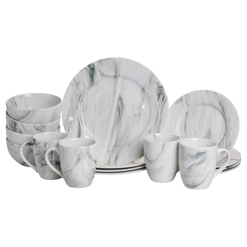 Столовый набор посуды тарелок и чашек 16 предметов на 4 персоны marmor фарфоровый, обеденн...